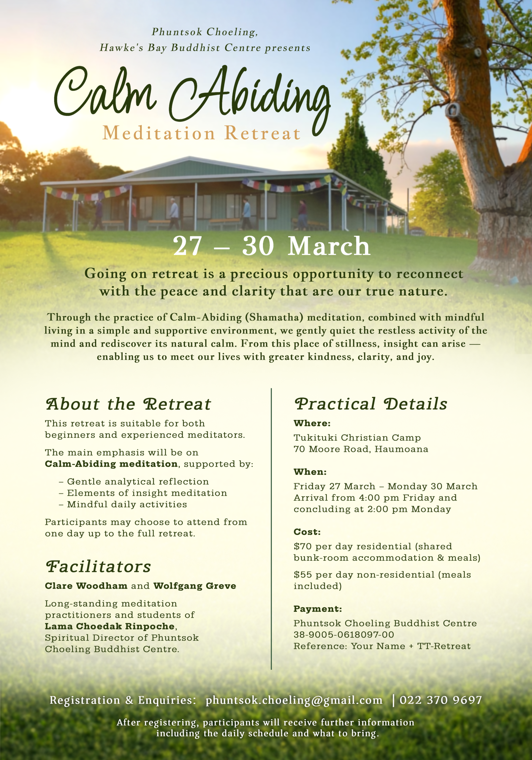 For the next meditation course email; phuntsok.choeling@gmail.com